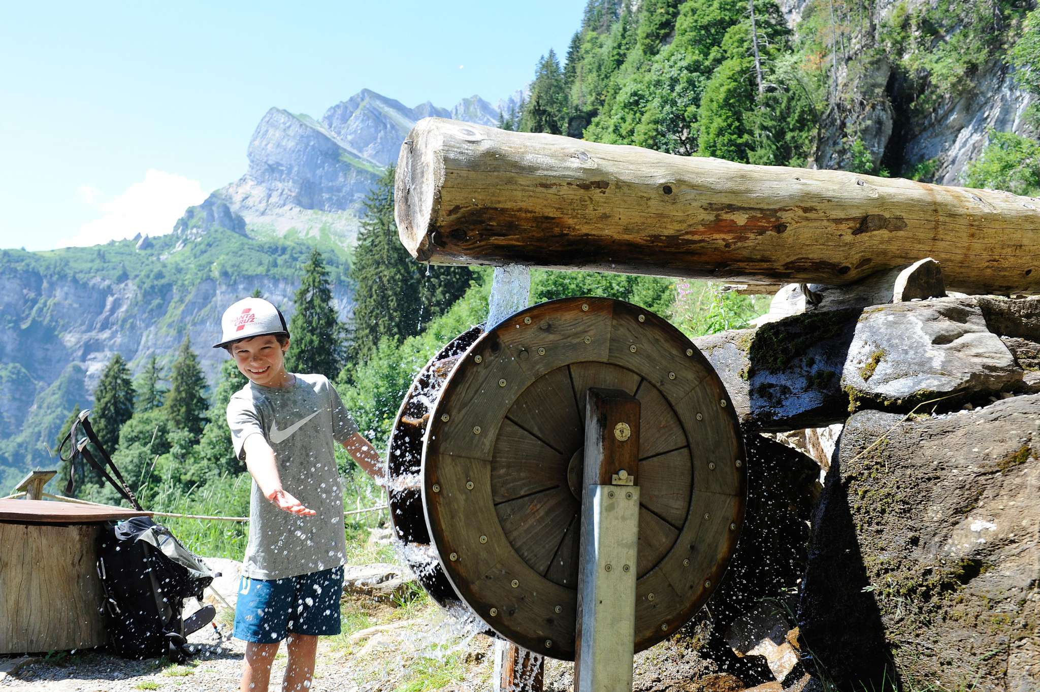 Der Wasserspielplatz befindet sich auf dem Zwerg-Bartli-Erlebnisweg und ist ein Vergnügen für Gross und Klein.